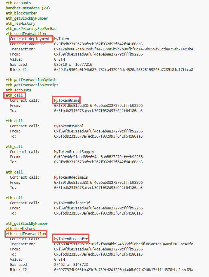 hardhat node输出