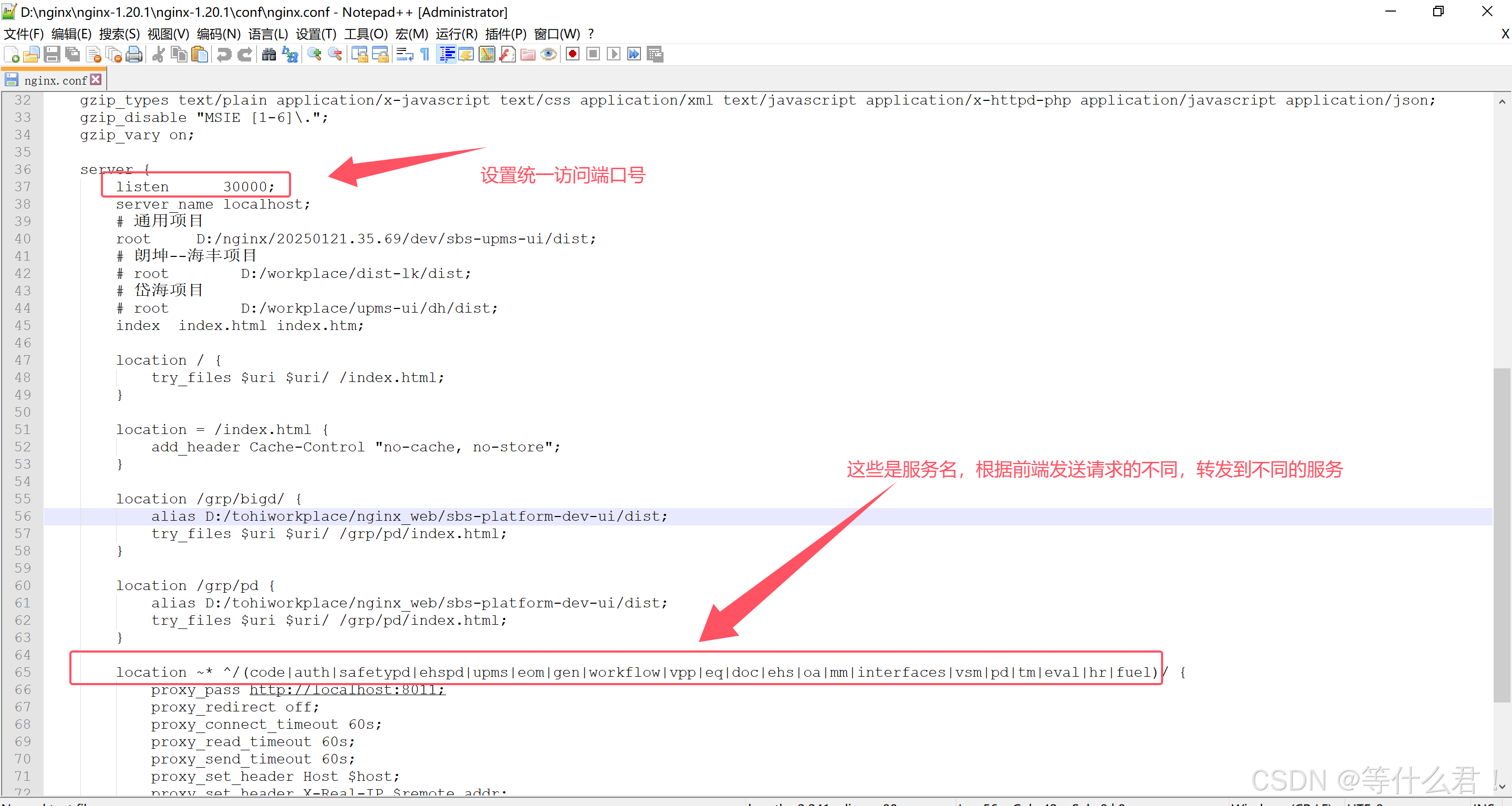 举一个例子:我们写的前端代码,每一个模块的端口号都不同的。比如商品管理,订单管理。但是对于用户来说,他们不在意这些端口号是8080还是8081,只希望记住一个的网址,就可以进入浏览。因此使用 统一访问端口号的好处在于,给用于提供一个简单,方便记忆的网址。而nginx 刚好是做这事的,可以设置统一端口号。