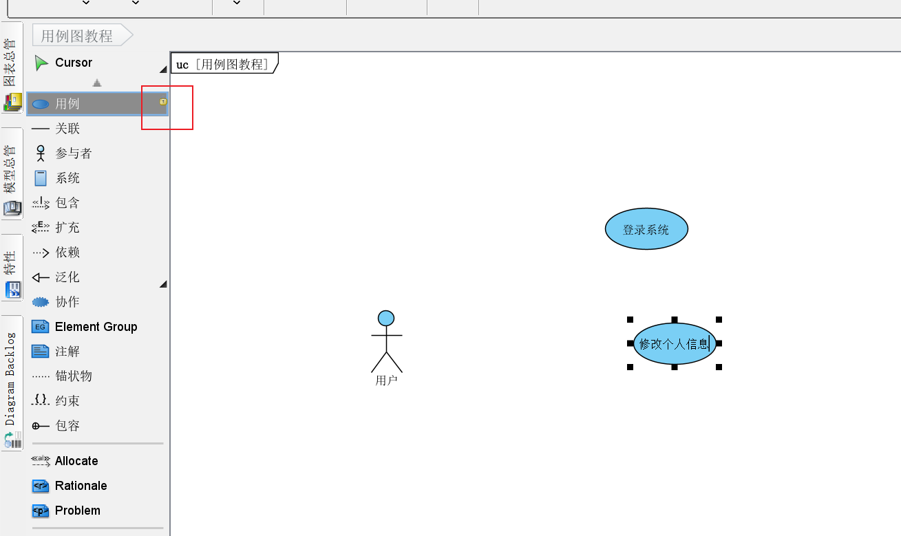 这里在绘制具体的图例的时候,有和StarUML一样的功能,就是双击图例,可以锁定绘制,这样就不用一个一个点一下再新增用例了: