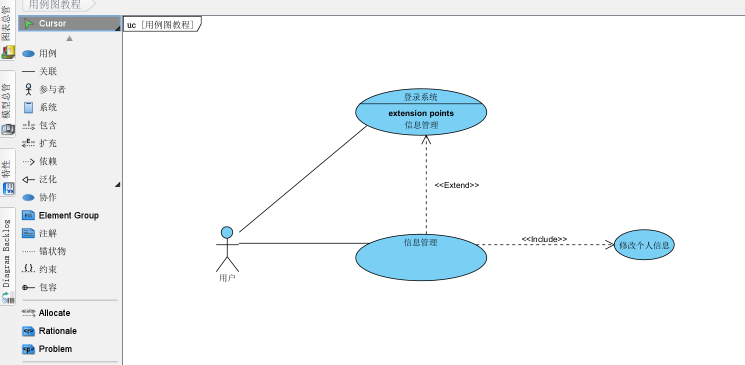 感觉VP的用例图没有什么好讲的,只要你会正常的软件绘制用例图,基本上都能正常无难度使用VP进行用例图的设计: