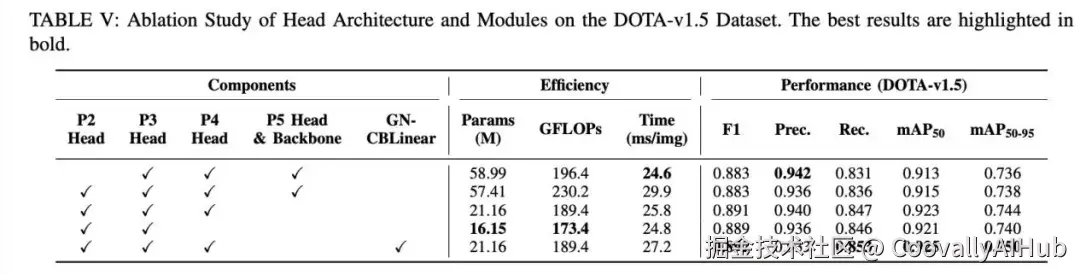 - 对于计算效率: 移除庞大的P5模块,参数量大幅下降(从约5900万减少到约2100万),计算量(GFLOPs)也得到优化。