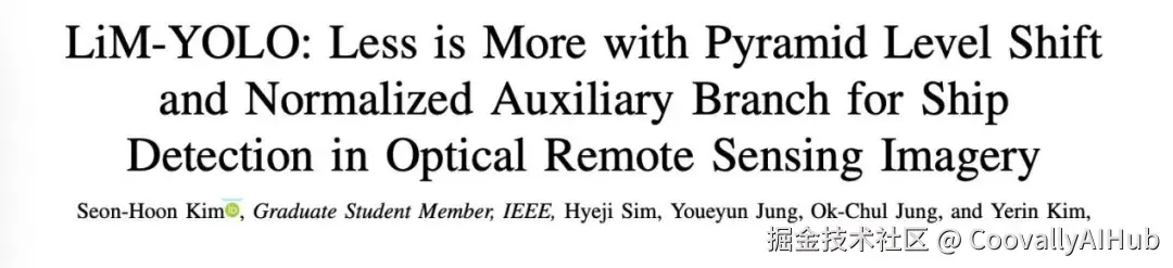今天,我们要介绍一篇来自韩国研究团队的精彩论文《LiM-YOLO: Less is More with Pyramid Level Shift and Normalized Auxiliary Branch for Ship Detection in Optical Remote Sensing Imagery》,它直击当前船舶检测模型的痛点,提出了一种"少即是多"的全新架构,不仅在精度上实现突破,还大幅降低了模型复杂度和计算成本。
