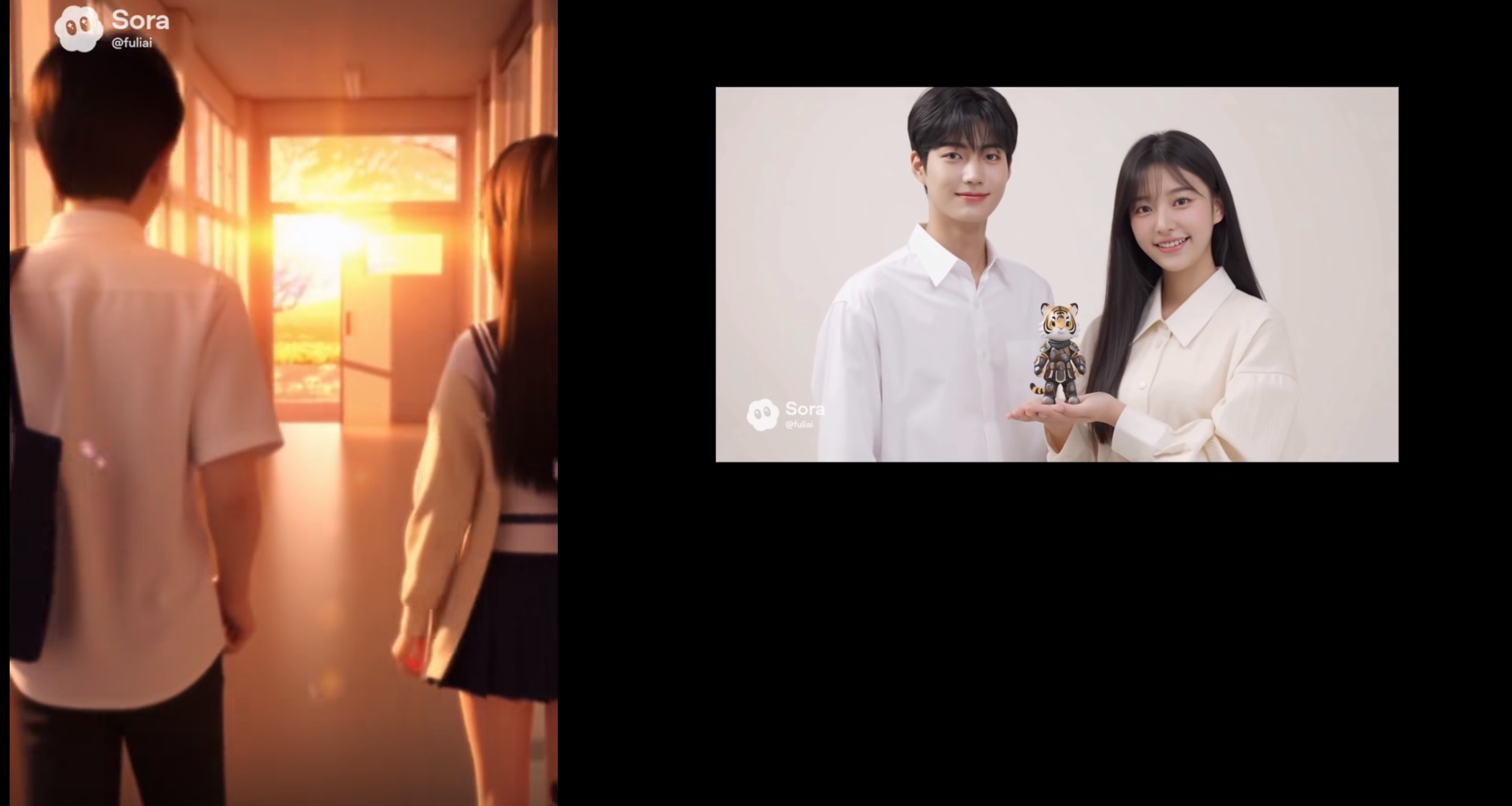 Cameo作为Sora 2的王牌功能,实现了"真人特征+AI场景"的完美融合,支持多角色同框创作,操作流程简单易懂: