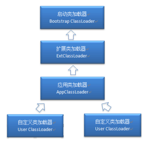 BootstrapClassLoader>ExtClassLoader>AppClassLoader,之所以这样设计,主要是为了扩展与安全。