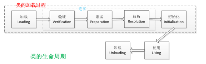 类的生命周期包括:加载、连接、初始化、使用和卸载