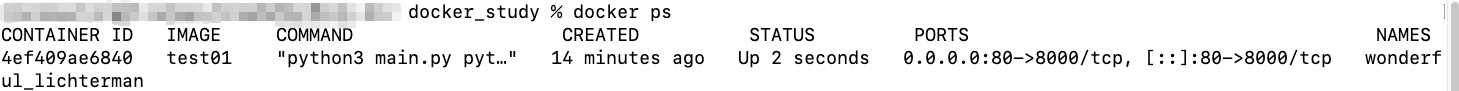 docker run -d -p 80:8000 test01 命令基于这个镜像创建一个容器,并且运行起来。