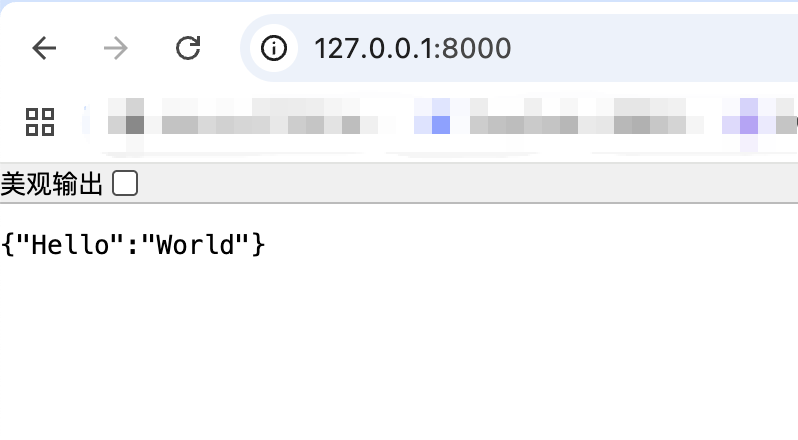 然后在本地浏览器访问 http://127.0.0.1:80 就会返回 {"Hello": "World"}