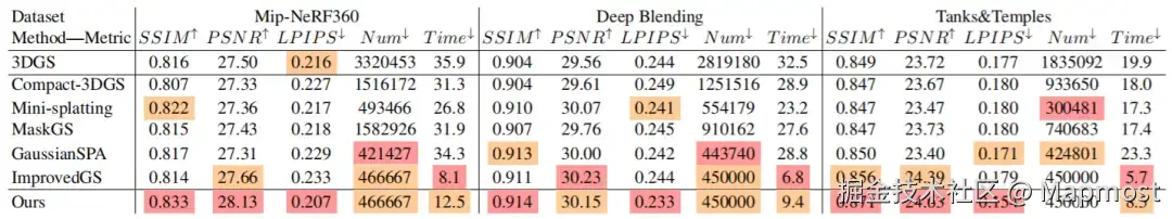 - 删除椭球后训练时间 有不同程度降低(GaussianSPA训练轮数更多)