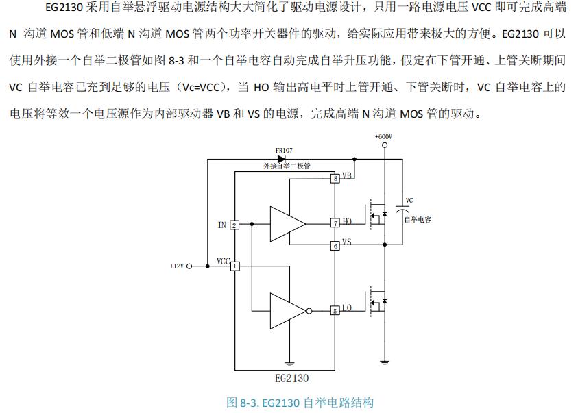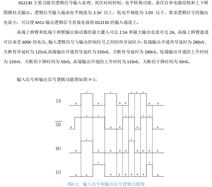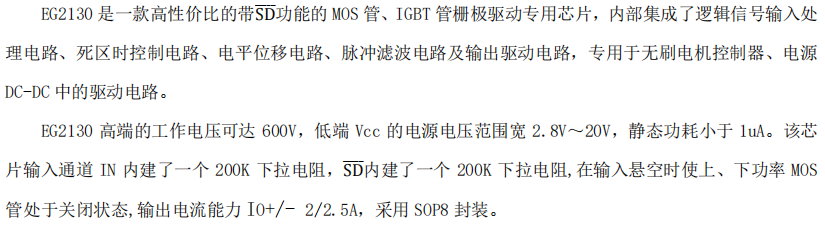 EG2130 是一款采用 SOP-8 微型封装、集成 关断(SD)控制 功能的 高压半桥栅极驱动器