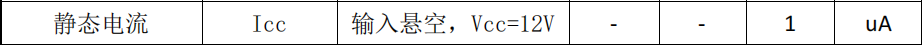- 静态电流(ICC):最大 1μA(输入悬空,VCC=12V),极低待机功耗