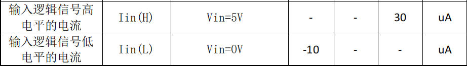 - 高电平输入电流:最大 30μA(Vin=5V)