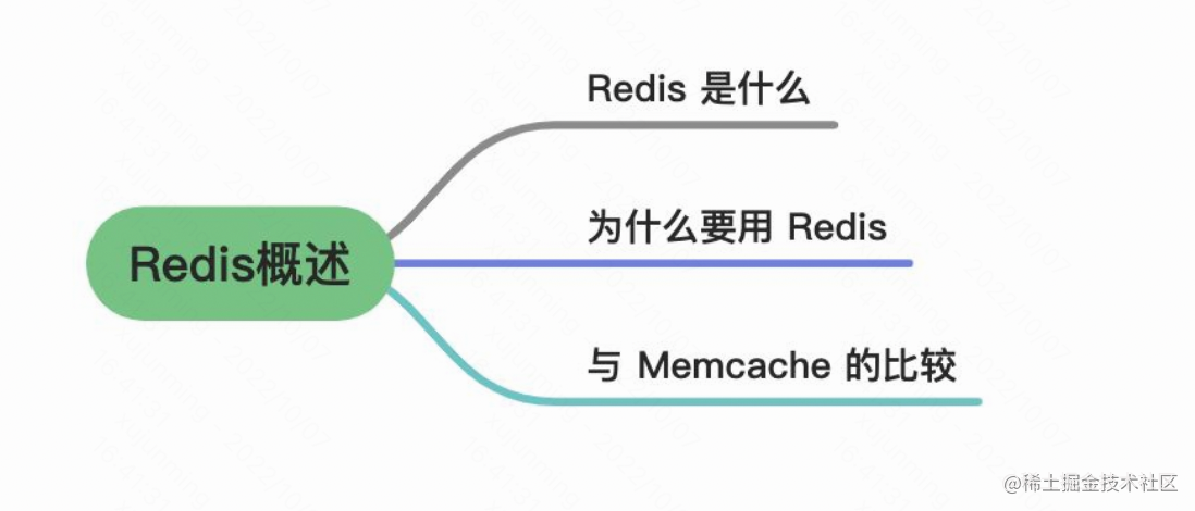本文主要从三个方面来介绍(如下图所示):Redis 是什么、为什么使用 Redis 以及 Redis 与 Memcached 的对比。其中,第二、第三方面也是面试的重灾区,在不同等级的面试中,多多少少都会涉及到这两方面的问题。
