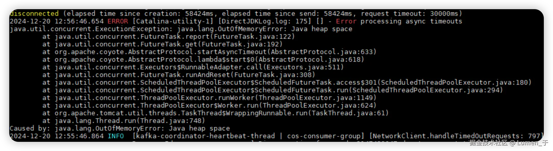 随后查看日志发现服务触发了OOM异常。