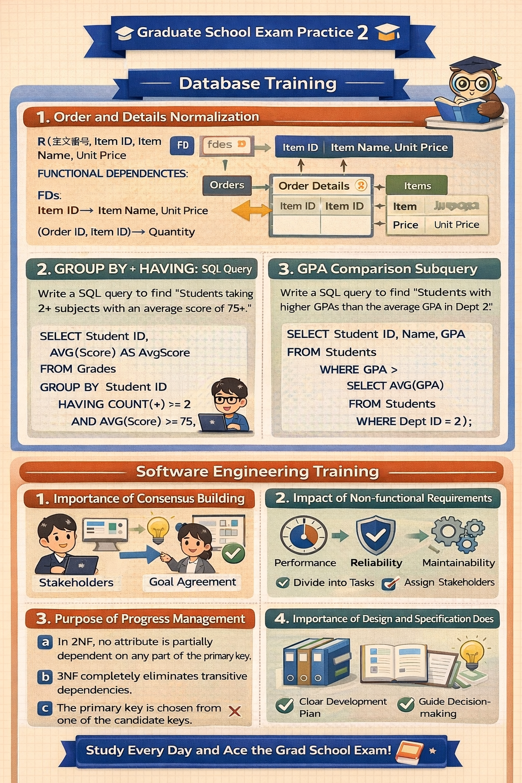 大学院-筆記試験練習:数据库(データベース問題訓練) と 软件工程(ソフトウェア)(2)