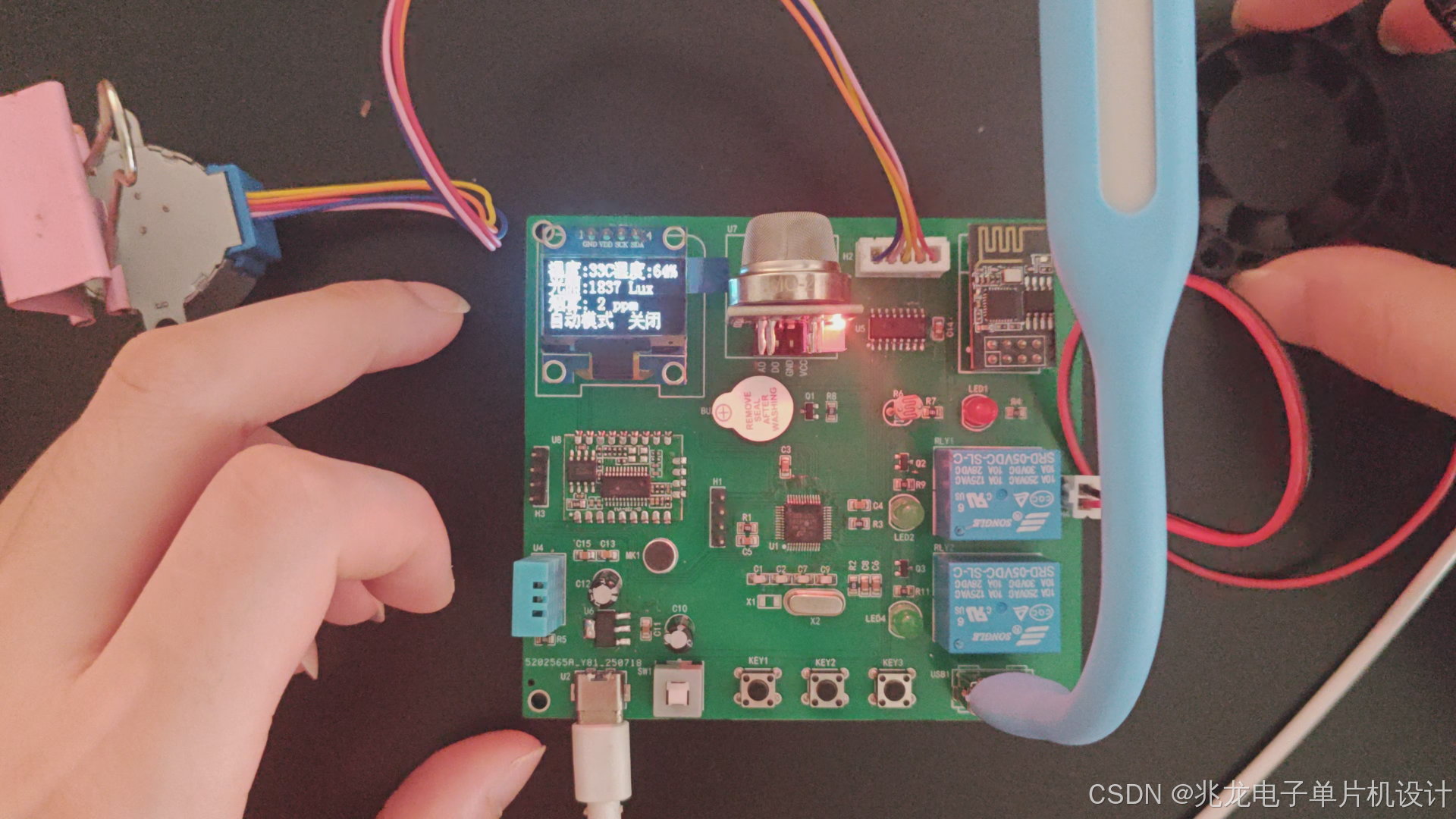 (3)显示功能:将检测到的传感器数据、当前模式、窗帘状态显示在OLED屏幕上