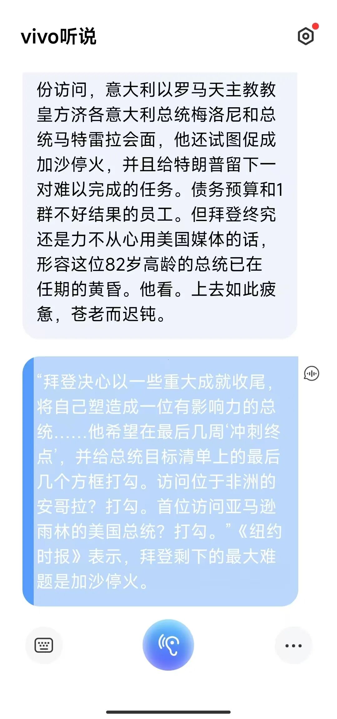 vivo听书有两大功能,一个功能是实时语音转文字,一个功能是语音播报。