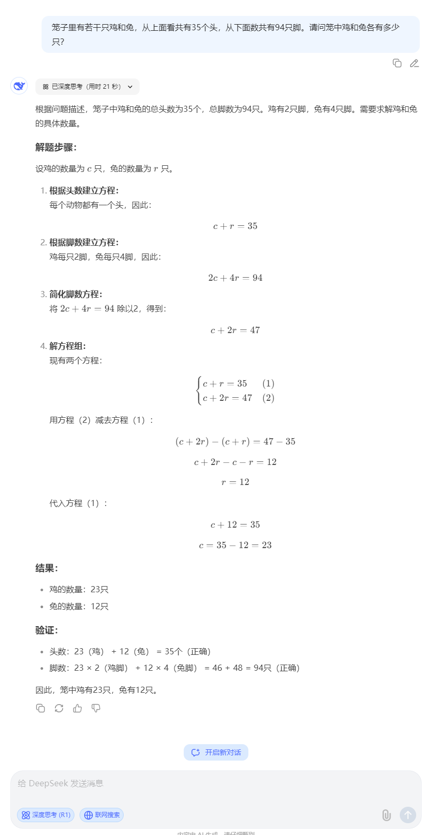第二个出场的是Deepseek-R1,我们也看看它如何反应: