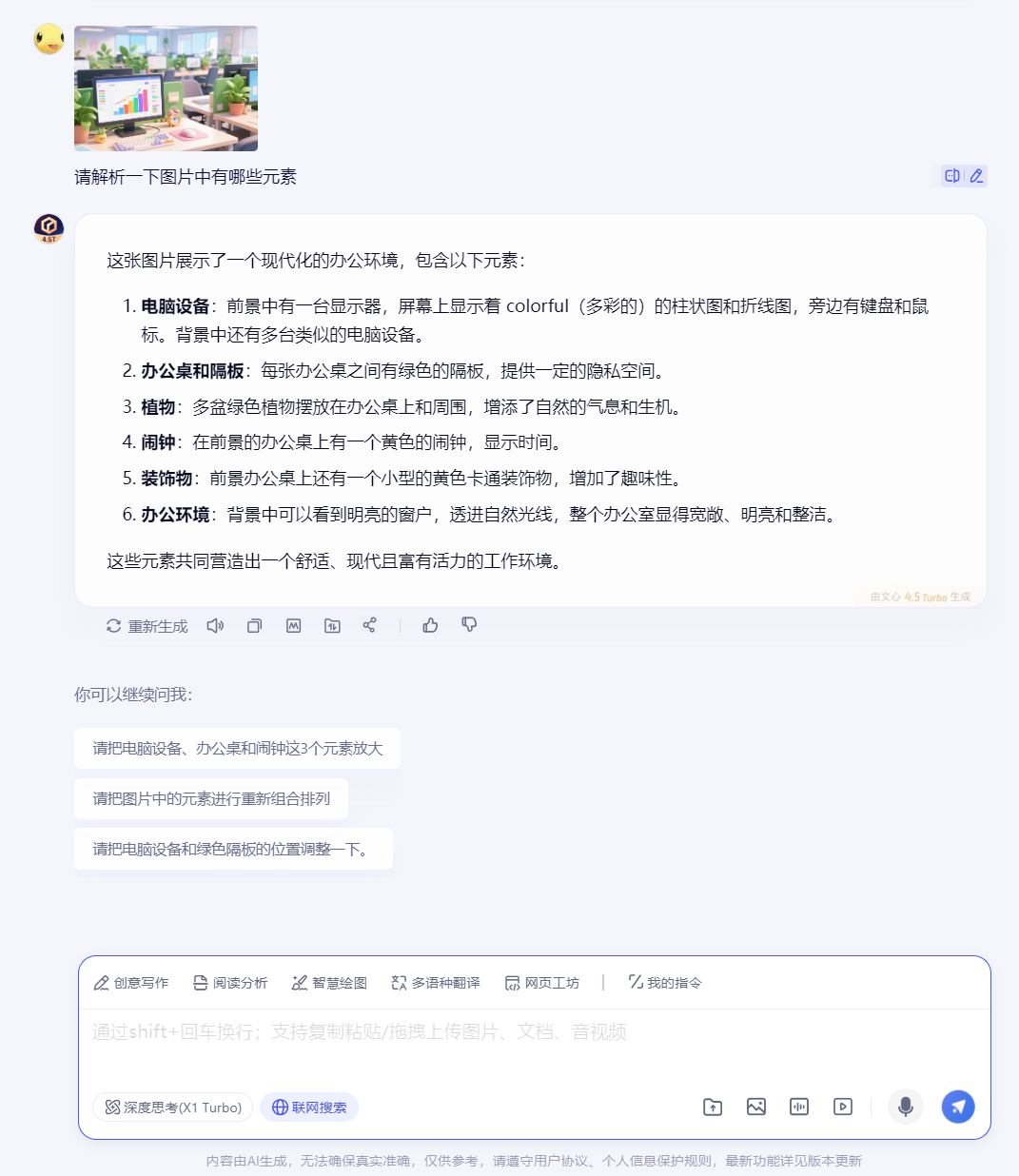 综上,文心4.5在多模态处理能力方面确实已经能做到充分理解图文含义,主打一个全能小能手!