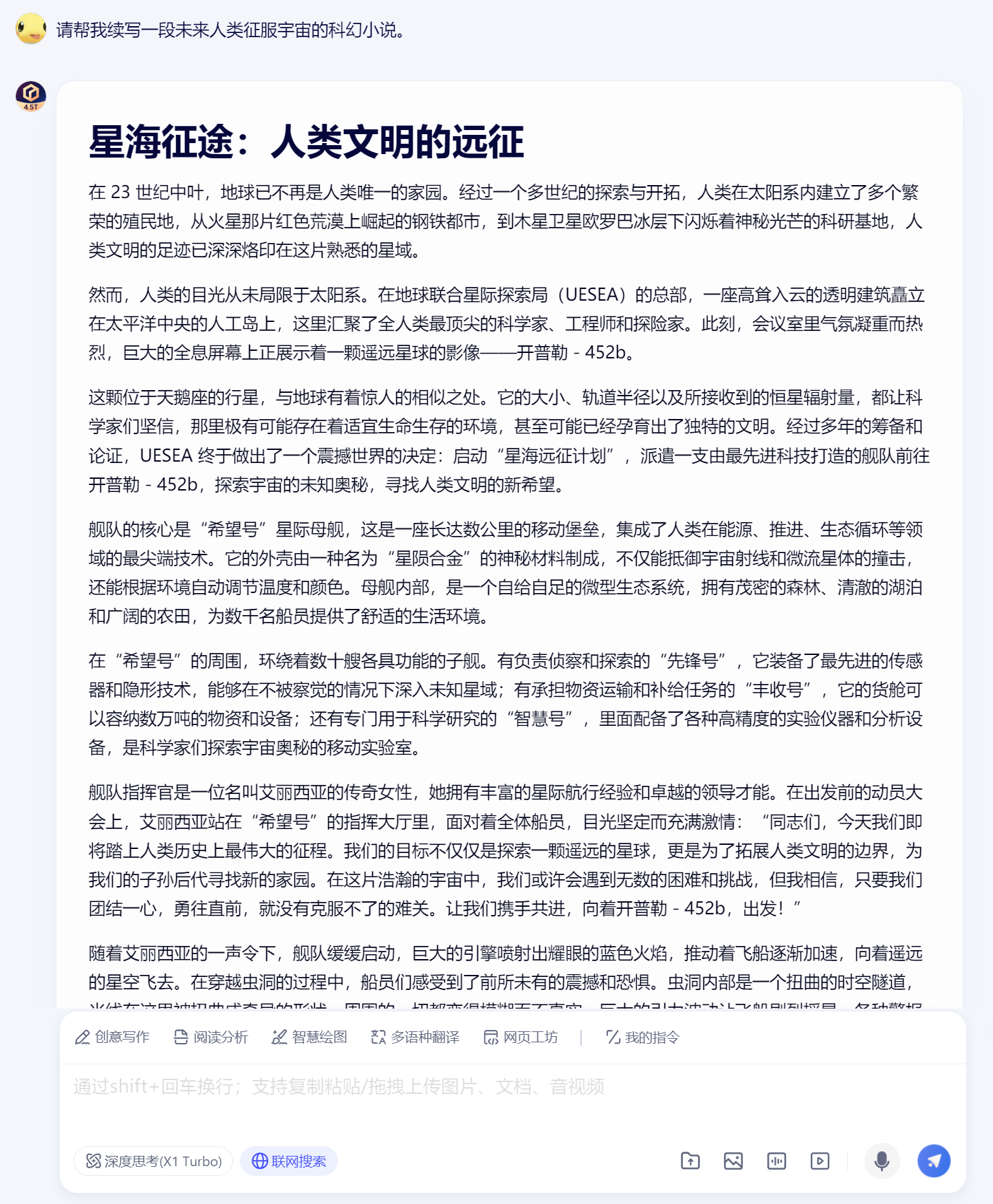 从在毫无额外提示的情况下,这个科幻小说的撰写情况咱们也能看出文心写作这一块真的是嗷嗷的猛!