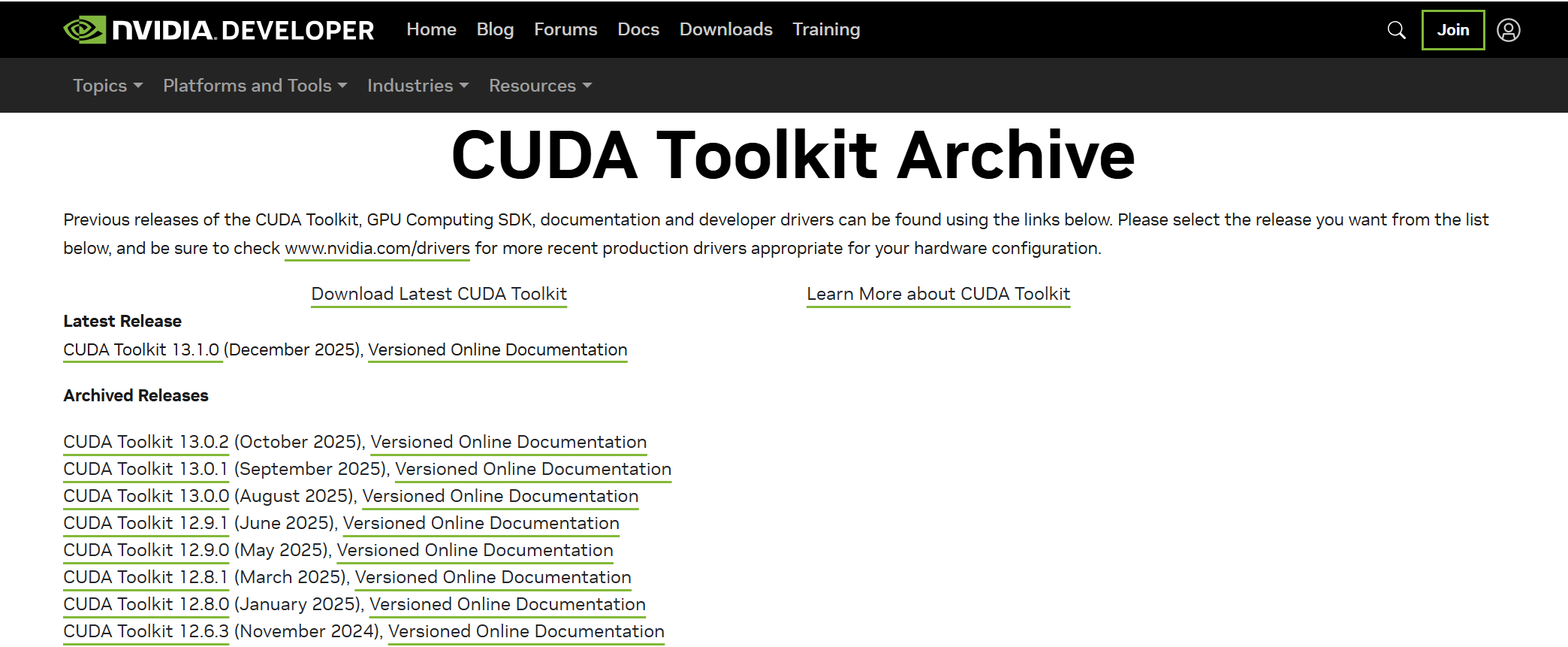 - 官方下载地址:https://developer.nvidia.com/cuda-toolkit-archive