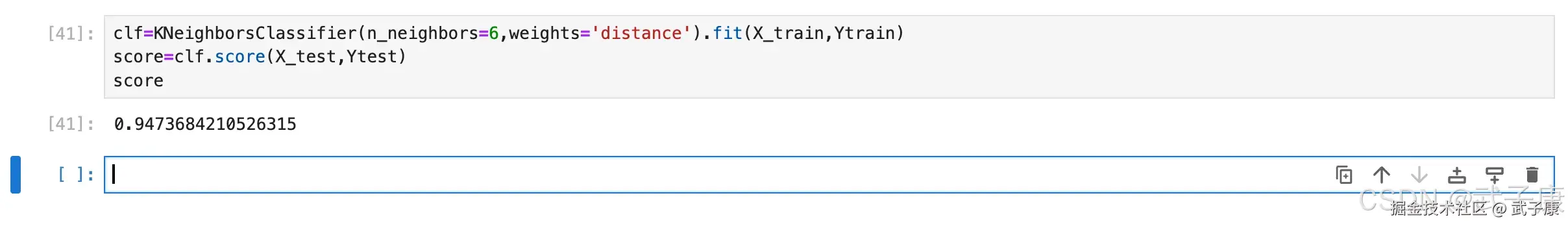 这里需要注意的是,关于模型的优化方法只是在理论上而言进行优化会提升模型判别效力,但实际应用过程中最终能否发挥作用,本质上缓释取决于优化方法和实际数据情况的契合程度,如果数据本身存在大量异常值点,则采用距离远近作为惩罚因子则会有较好的效果,反之则不然。 因此在实际我们进行模型优化的过程中,是否起到优化效果还是要以最终模型运行结果为准,在 sklearn 中,我们可以通过参数 weights 来控制是否适用距离作为惩罚因子。