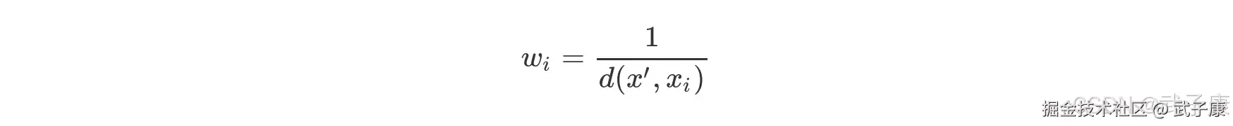 关于惩罚因子的选取有很多种方法,最常用的就是根据每个近邻 x=距离的不同对其做加权,加权方法设置 Wi 权重,该权重计算公式为: