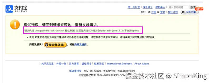 openid配置管理是新版默认开启的参数。低版本支付宝服务端 SDK 不支持获取 openid,在使用 openid 开发接入前,请先确保使用的 SDK 符合版本要求: