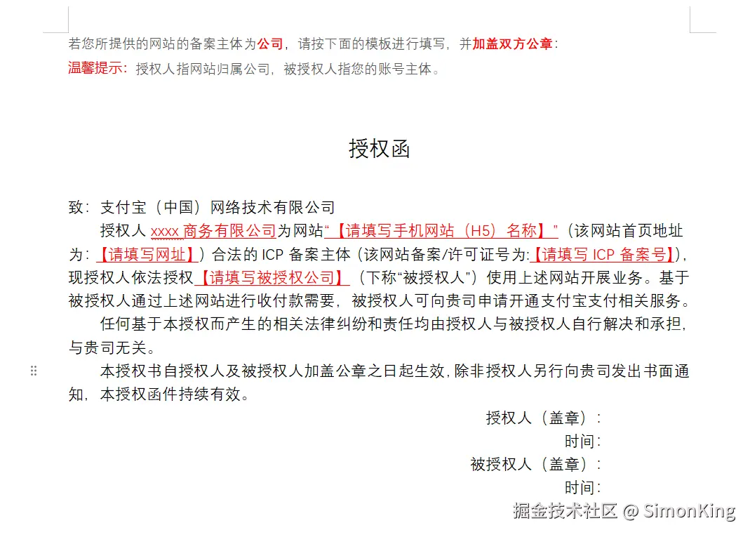 这里的我已经开通过了,没有开通话需要开通支付产品。开通过程中,如果网站的主体和商家后台的主体不一致需要授权。授权函如下图: