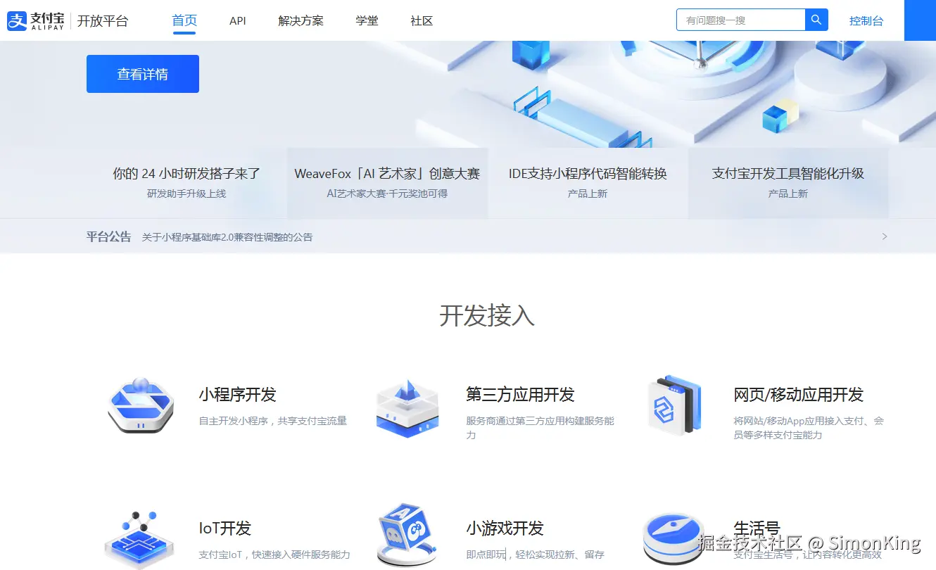 开放平台地址:openhome.alipay.com/