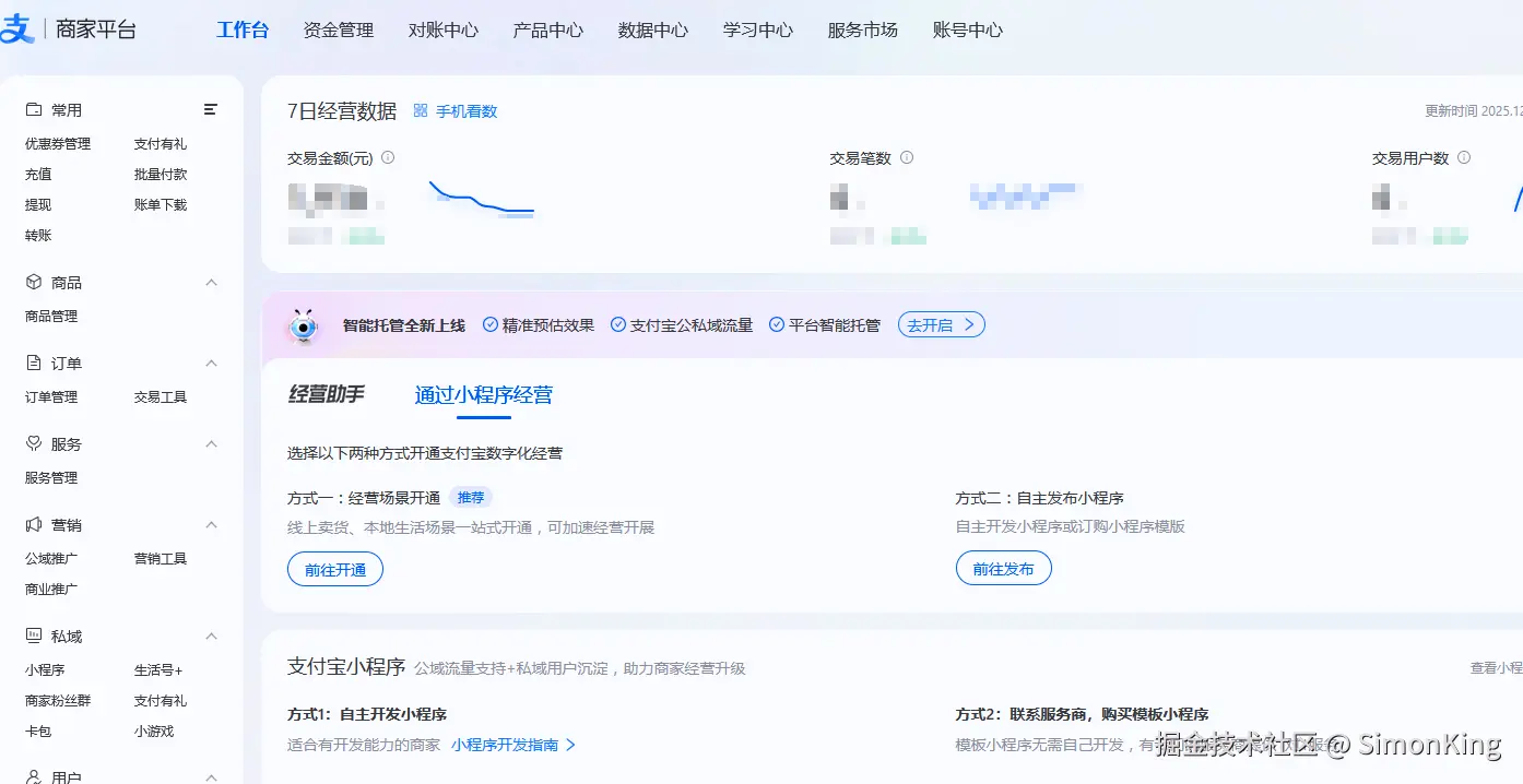 商家平台地址:b.alipay.com/page/home