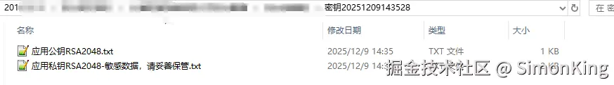 最终我们生成的秘钥文件包括:应用公钥和私钥
