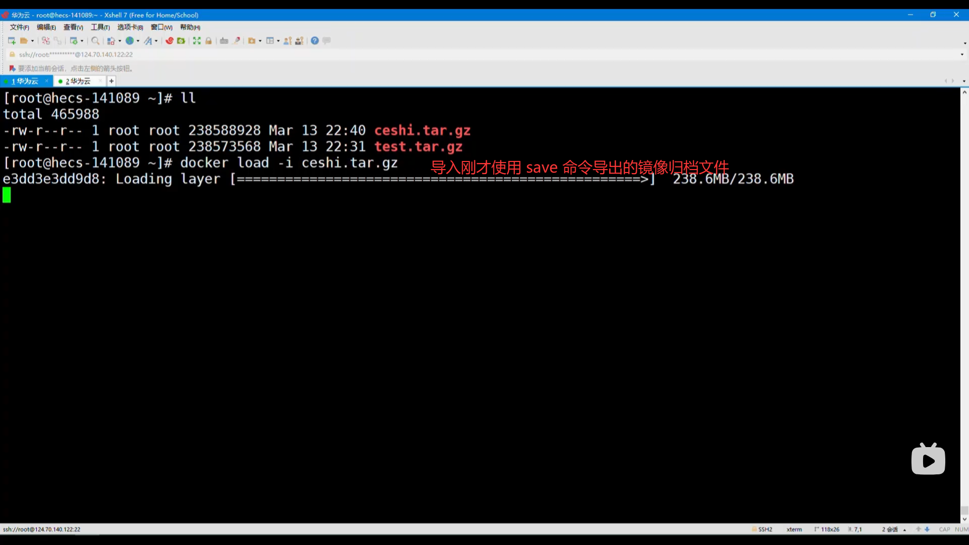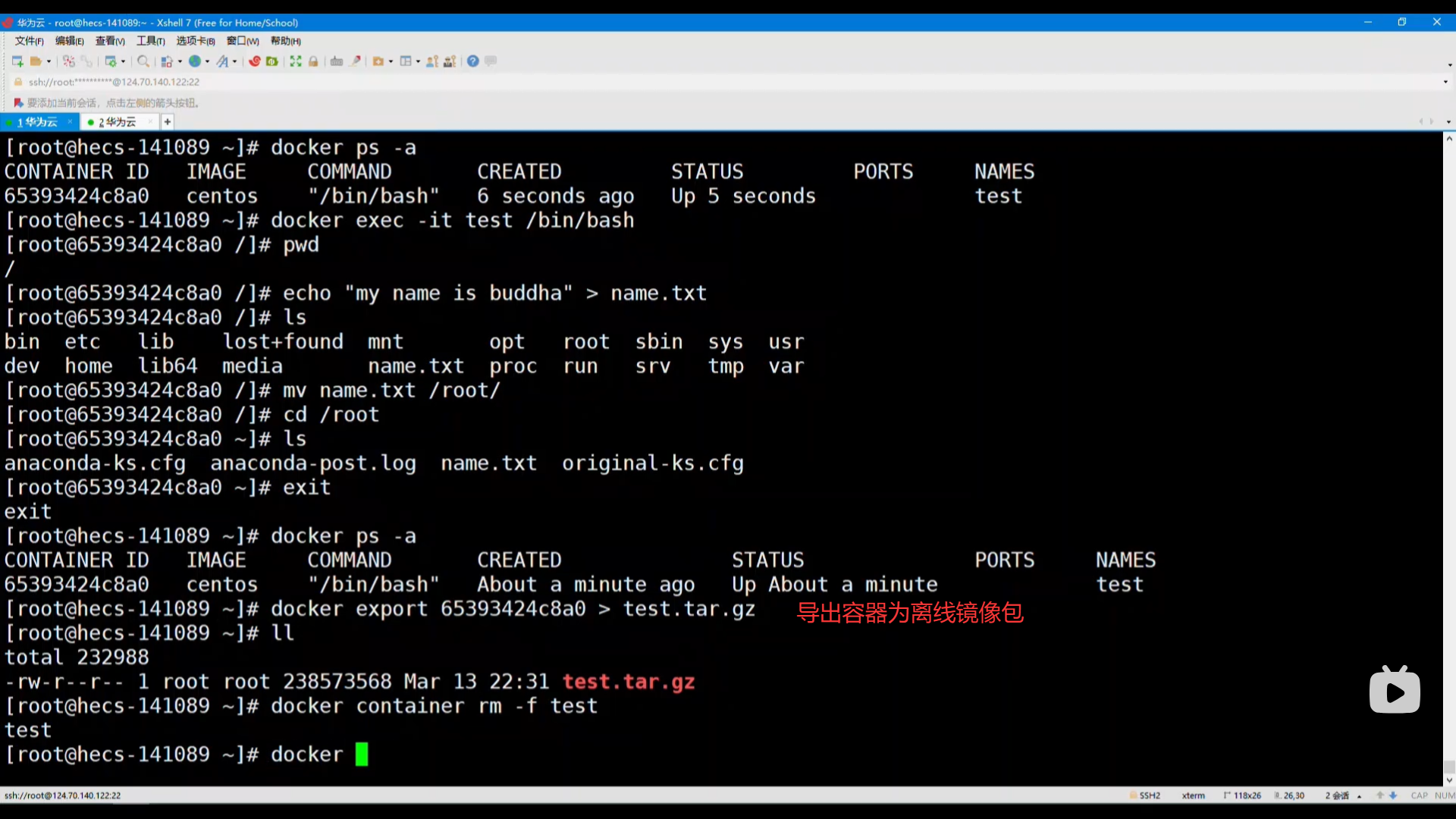 【010-镜像容器相关命令,docker export/import/save/load/commit】 https://www.bilibili.com/video/BV1Ty421i7Bu/?share_source=copy_web\&vd_source=855891859b2dc554eace9de3f28b4528