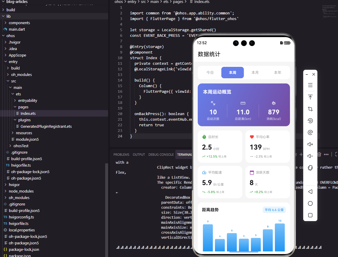 运动数据统计分析是帮助用户了解自身运动表现的重要功能。通过对历史数据的汇总、趋势分析和对比,用户可以清晰地看到自己的进步和需要改进的地方。本文将详细介绍如何在Flutter与OpenHarmony平台上实现运动数据统计分析组件,包括数据聚合、趋势计算、周期对比等功能模块的完整实现方案。