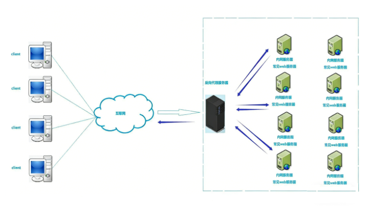 反向代理服务器位于客户端和Web服务器之间,当客户端发起请求时,它首先会到达反向代理服务器。反向代理服务器会根据配置的规则将请求转发给后端的Web服务器,并将Web服务器的响应返回给客户端。在这个过程中,客户端并不知道实际与哪个Web服务器进行了交互,它只知道与反向代理服务器进行了通信。