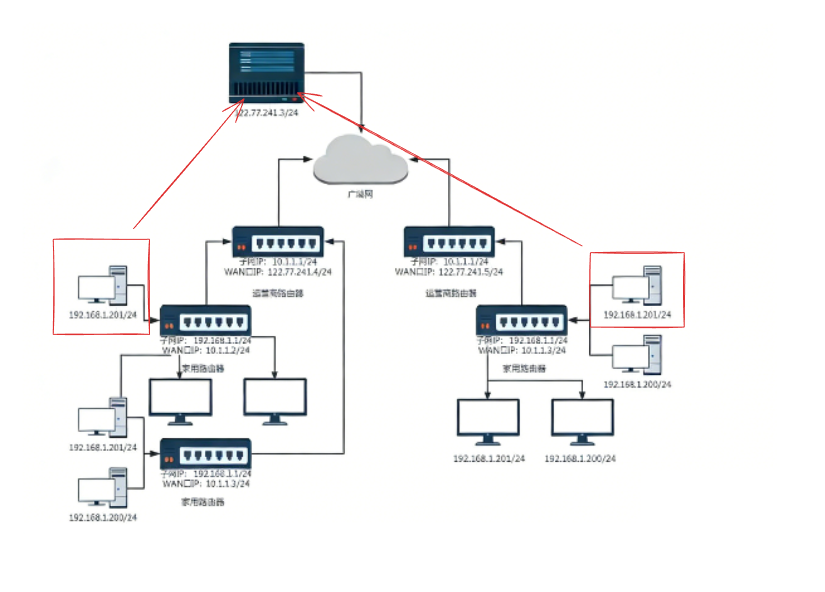 私网和公网起码还有NAT技术保证通信,私网和私网之间则更加难以通信了。
