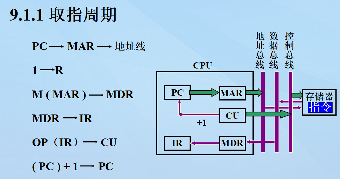 指令周期数据流(比第一章要细化)要加上经过的总线