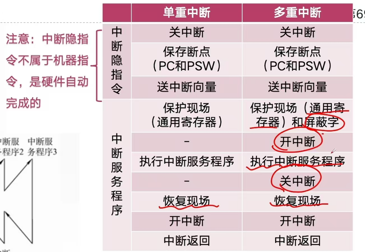 5.20 试比较单重中断和多重中断服务程序的 处理流程,说明它们不同的原因。