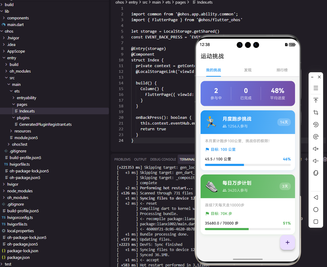 本文全面介绍了Flutter与OpenHarmony平台上运动挑战组件的实现方案。从挑战模型到服务接口,从卡片展示到排行榜,从通知提醒到创建表单,涵盖了挑战功能的各个方面。通过有时限的目标和社交竞争,我们可以有效激励用户保持运动热情,提升应用的用户粘性。欢迎加入开源鸿蒙跨平台社区:https://openharmonycrossplatform.csdn.net