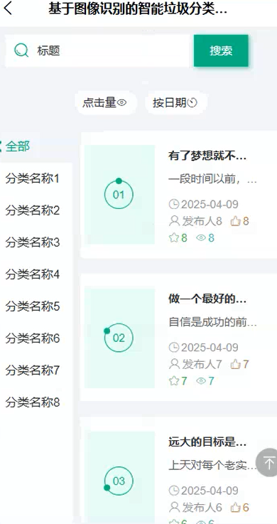 随着城市化进程加速与人口持续增长,城市垃圾产量呈指数级攀升,传统垃圾分类方式依赖人工指导与纸质手册查询,存在效率低下、用户参与度不足、分类准确率低等问题。据住建部调研,超60%的居民因分类标准复杂存在"不知如何分、分错率高"的困扰,而人工分拣模式人力成本高且难以满足大规模推广需求。与此同时,图像识别技术依托深度学习算法,在物体识别领域已实现95%以上的准确率,具备响应速度快、适应复杂场景的优势。在此背景下,基于微信小程序的图像识别智能垃圾分类系统应运而生,通过集成AI技术、移动端交互与数据管理,旨在降低分类门槛、提升用户参与积极性,推动垃圾分类从"政策驱动"向"技术赋能"转型,助力智慧城市与绿色生态建设。