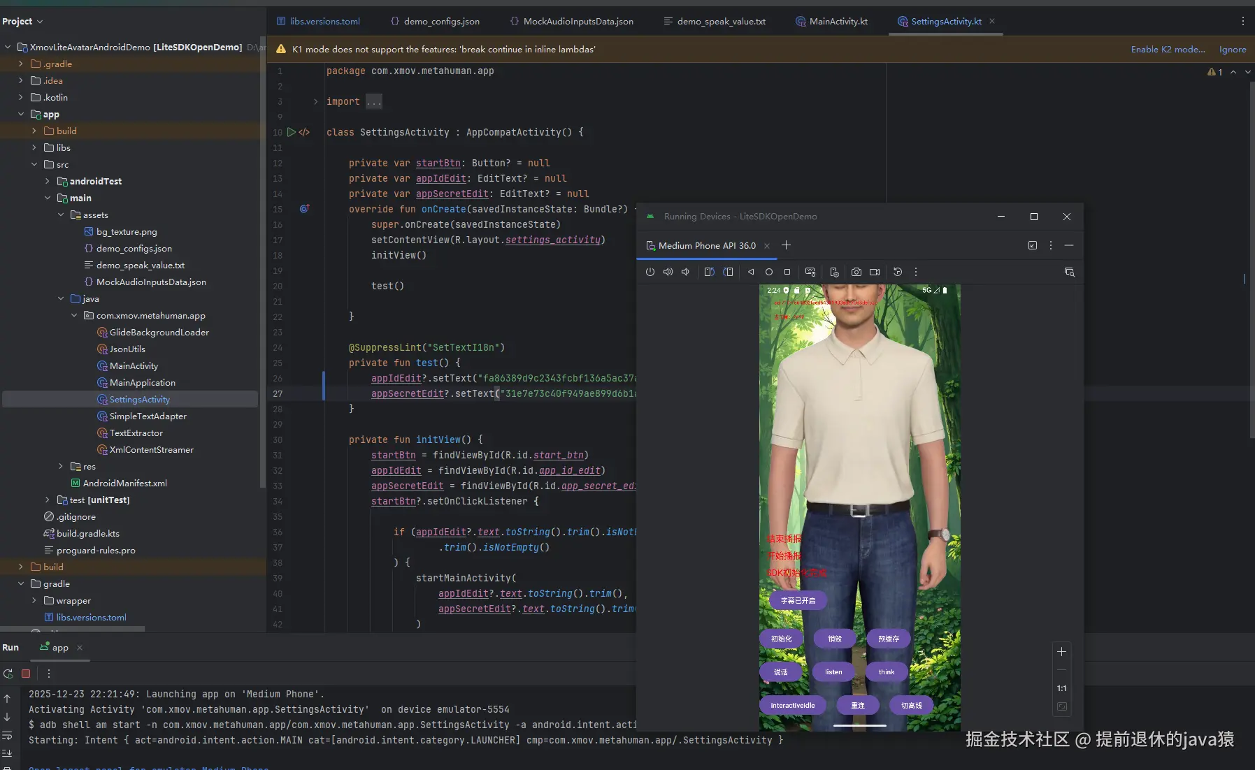 通过上面的几个步骤,工程就配置完成了,接下来就可以在工程中使用虚拟人SDK进行开发了。