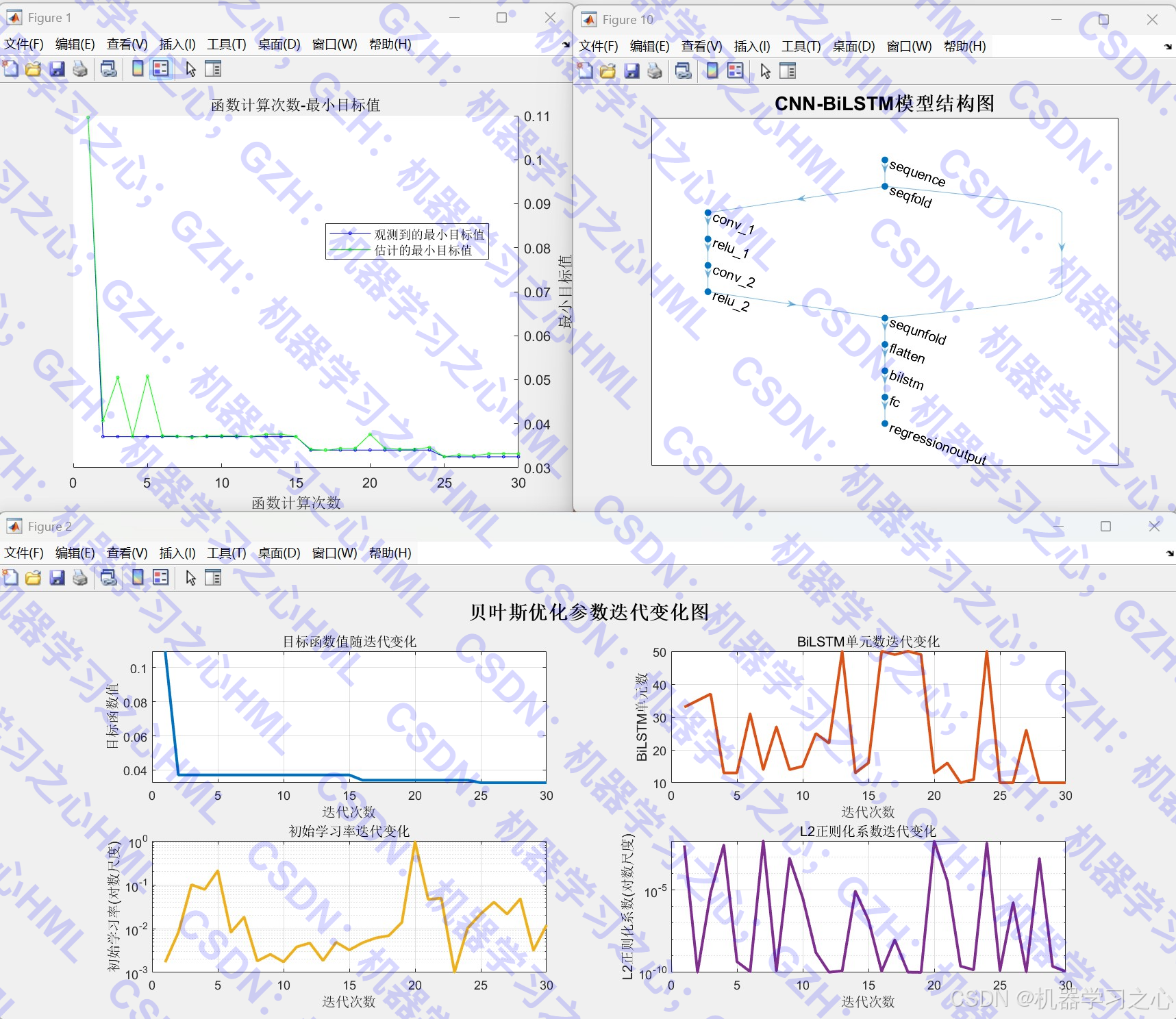 该代码实现了一个基于贝叶斯优化(BO)的卷积神经网络(CNN)与双向长短时记忆网络(BiLSTM)混合模型,用于多输出回归预测任务,旨在通过深度学习模型自动提取特征并捕捉时序依赖,结合贝叶斯优化自动调参,提升模型预测精度与泛化能力。