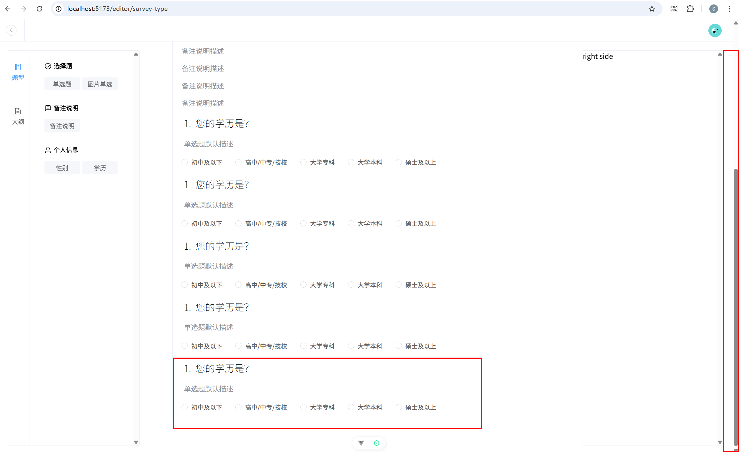 - 后台项目:主要是给管理员使用,包含用户管理、问卷管理、模板管理、题库管理...注意,后台也是能够进入到编辑器的,后台拥有创建题库、模板的能力。