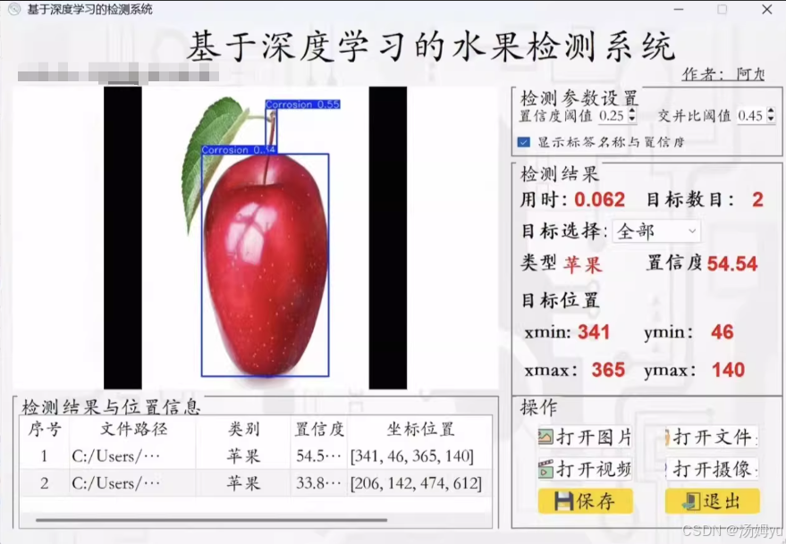 在农业智能化与消费市场高效运转的迫切需求下,开展基于YOLOv8的深度学习水果识别检测系统研究具有重大且多维的意义。从农业生产端来看,该系统能突破传统人工检测的局限,凭借其高效精准的特性,实时监测果实成熟度,为精准采摘提供科学依据,避免过早或过晚采摘造成的损失,提高水果品质与产量,助力农业生产的精细化、科学化管理,推动农业现代化进程。在流通环节,系统集成于智能分拣线,可实现水果的自动化分级,大幅提升分拣效率,每小时处理量可达2000 - 3000件,同时降低人工成本,减少因人工疲劳、经验差异导致的分拣误差,保障分拣质量的一致性,提升水果在市场中的竞争力。于消费终端而言,系统支持超市自助结算台快速识别商品品类,让消费者购物结算更加便捷高效,优化购物体验,满足消费升级下人们对高效、便捷服务的需求。此外,该研究通过优化YOLOv8模型,提升其在复杂光照、果实重叠遮挡等场景下的鲁棒性,为计算机视觉技术在农业领域的应用提供了新的思路与方法,推动相关技术的创新发展。其成果不仅可直接应用于水果产业,还能迁移至其他农产品检测领域,促进整个农业产业链的智能化升级,具有显著的经济效益与社会效益,对保障国家粮食安全、推动农业可持续发展具有重要意义。