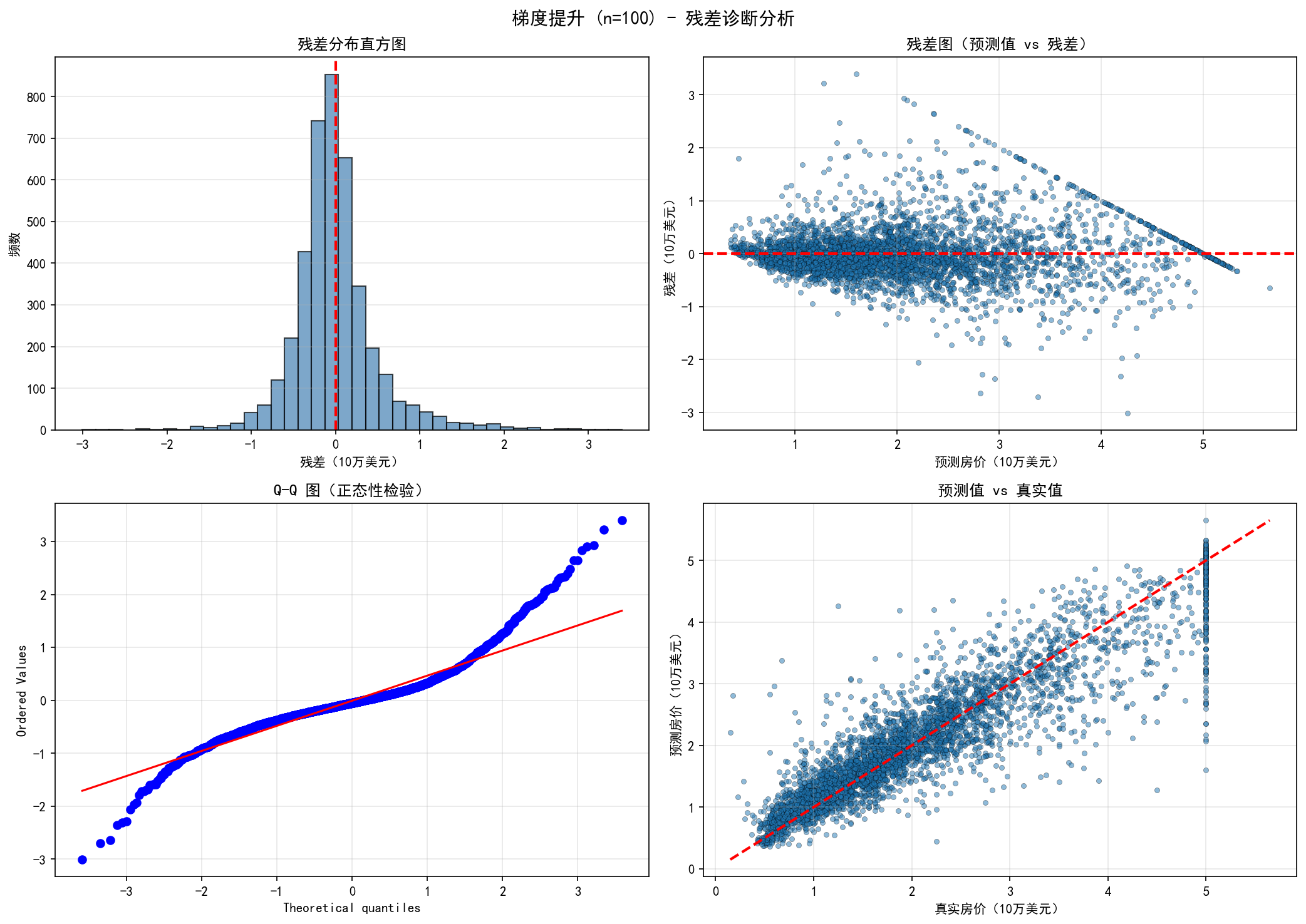 1. 梯度提升 (n=100) | Test R²: 0.8110 | Test RMSE: $49764.50 | Test MAE: $33486.17 | 过拟合: 0.0585
