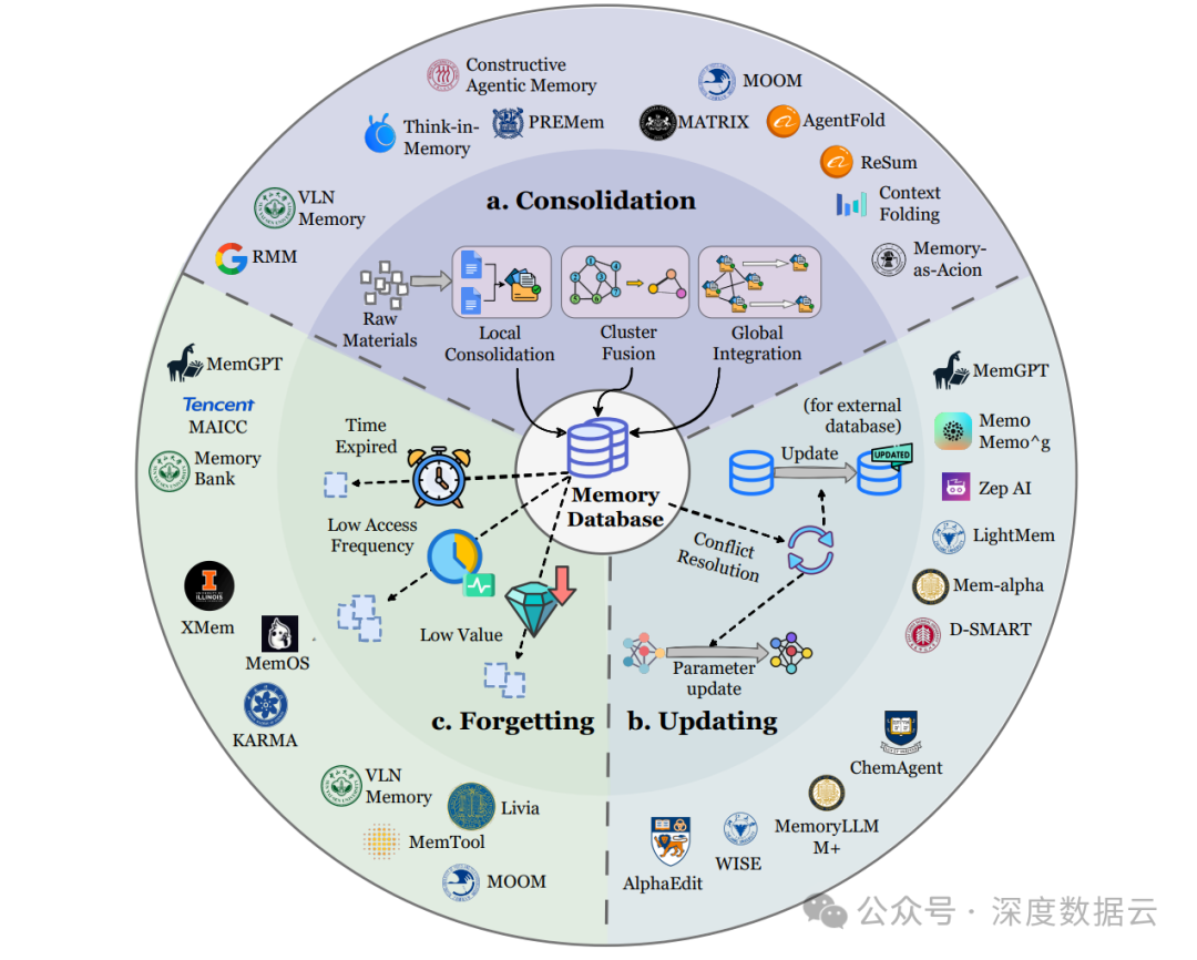MemGPT是这个领域的先驱者,它将操作系统概念引入AI记忆管理。就像电脑有内存和硬盘之分,MemGPT维护着工作内存 和长期存储两个区域。