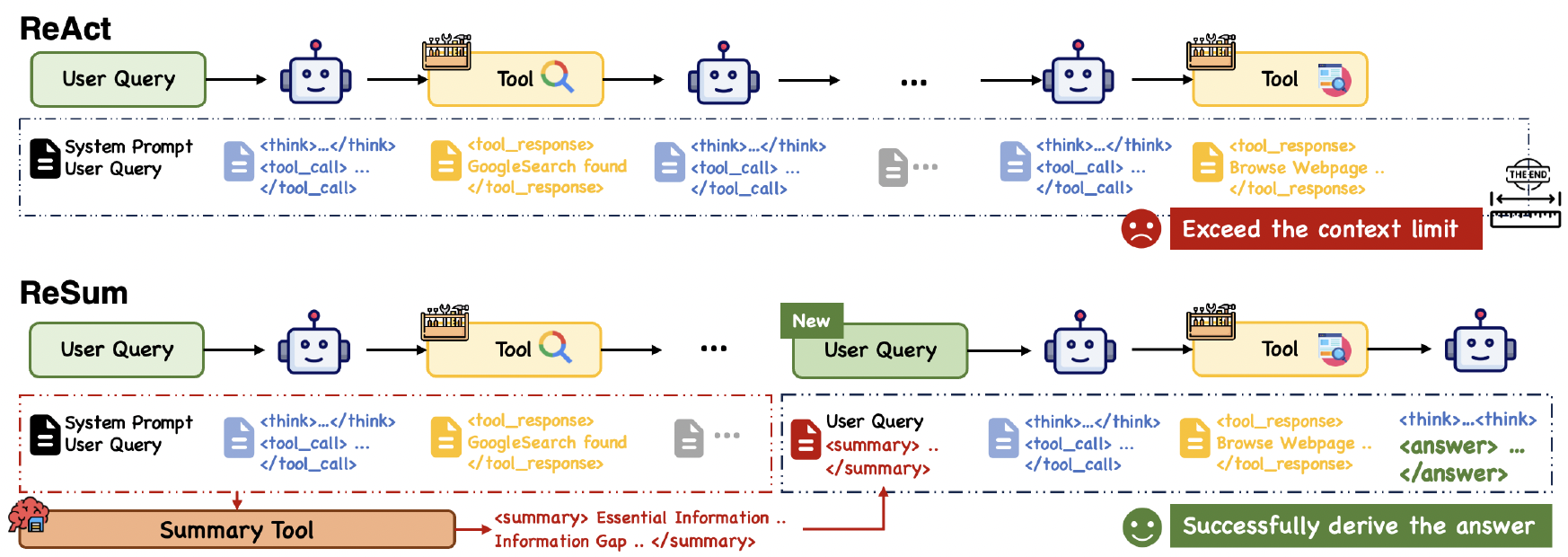 - 论文题目为《ReSum: Unlocking Long-Horizon Search Intelligence via Context Summarization》,arXiv ID为2509.13313