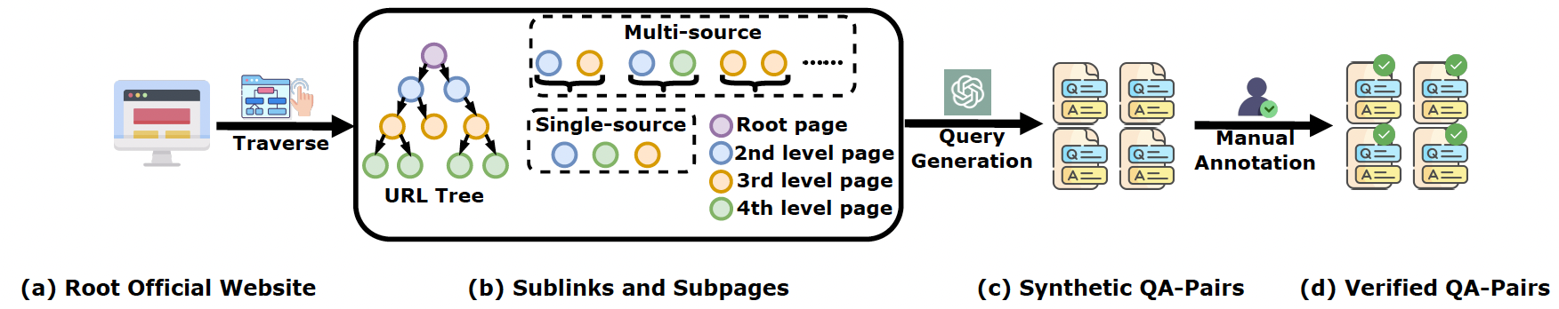 第一种方法是CRAWLQA,通过从种子URL出发,模拟像人一样浏览链接打开子页面,再使用GPT给予这些浏览过的网页生成问题和答案。