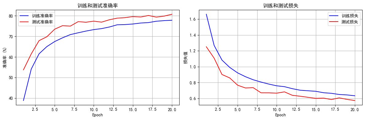 print(f"训练完成!最终测试准确率: {final_accuracy:.2f}%")