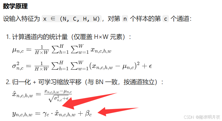 | IN | 样本 - 通道内(H×W) | 单样本 + 单通道 | 无 | 风格迁移、GAN | 无 |