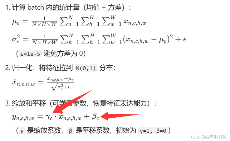核心思想:跨样本、按通道归一化。